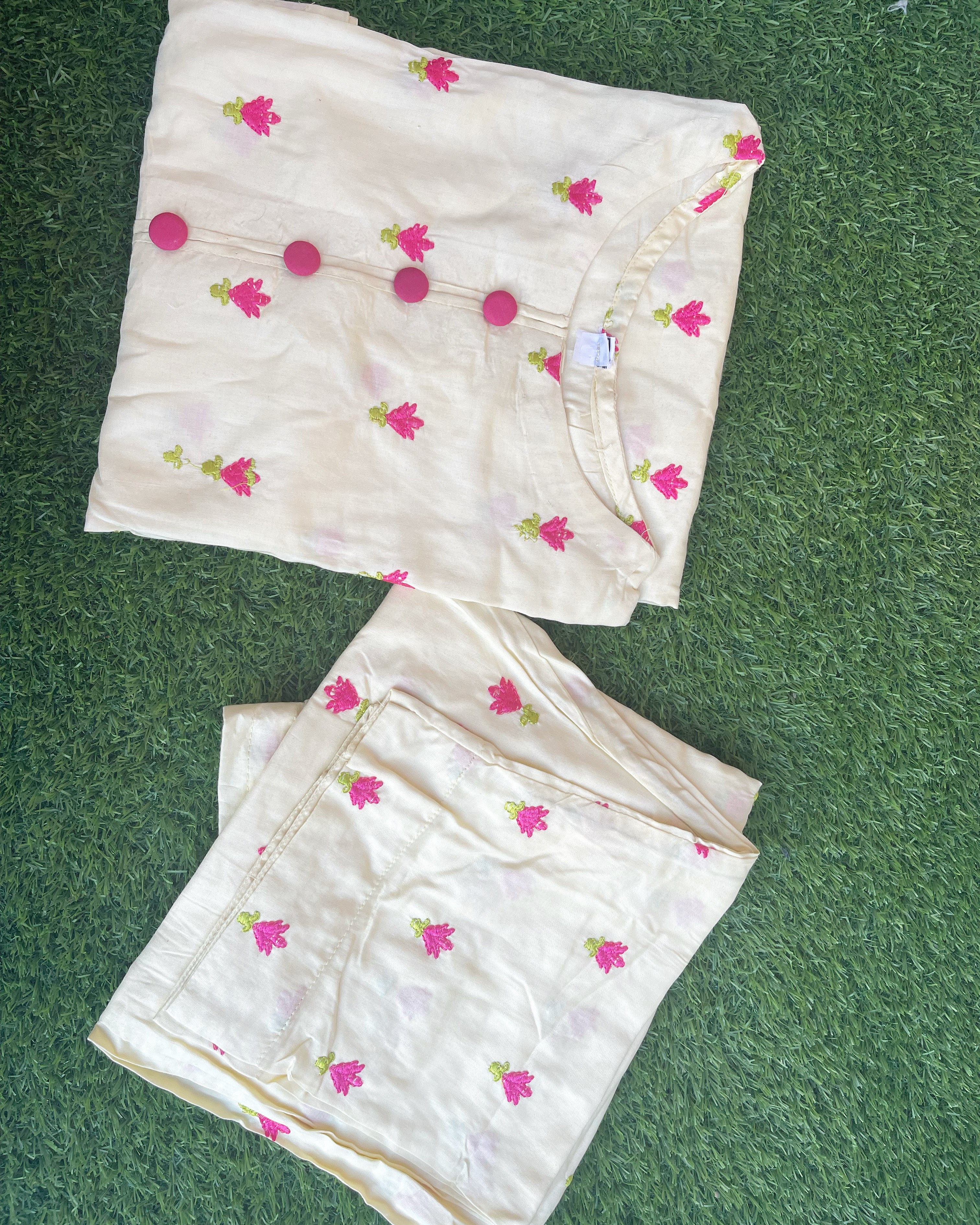 Expertly crafted 2-piece coordinating set made with high-quality fabric. The stitching is impeccable, and both the shirt and trousers feature beautiful two-tone embroidery.