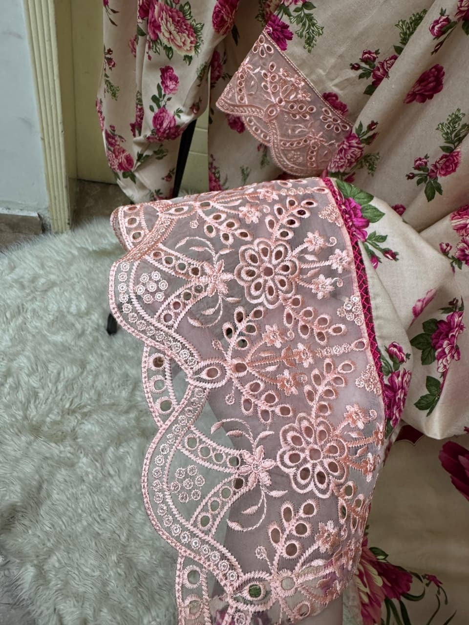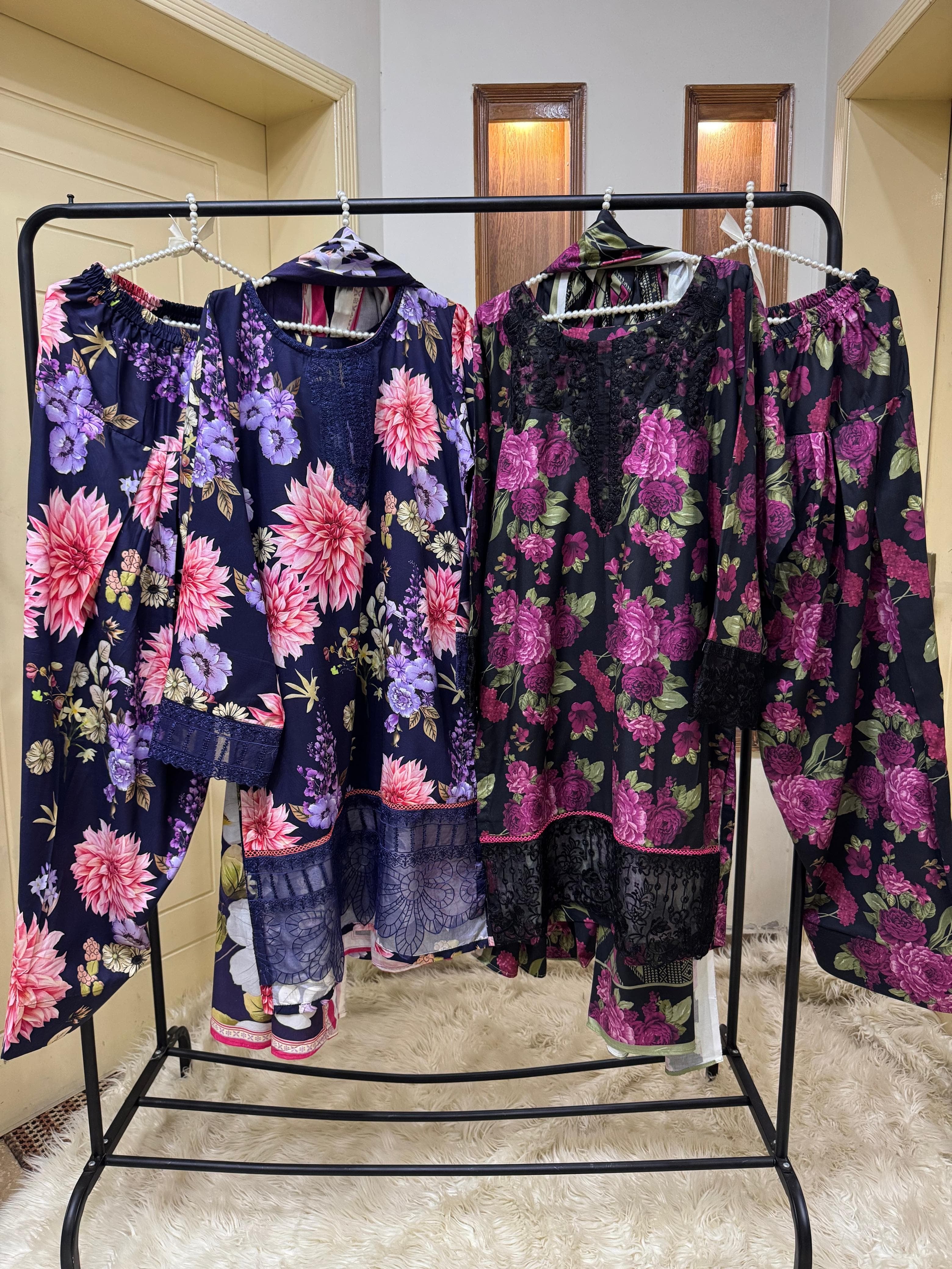Upgrade your winter wardrobe with the MUSHK 3PC collection. Made from quality linen fabric, each piece is delicately embroidered for a touch of elegance. The neckline and sleeves are adorned with beautiful embroidery, while the farshi shalwar adds a unique twist. Complete the look with the digitally printed shawl for a stylish and cozy ensemble.