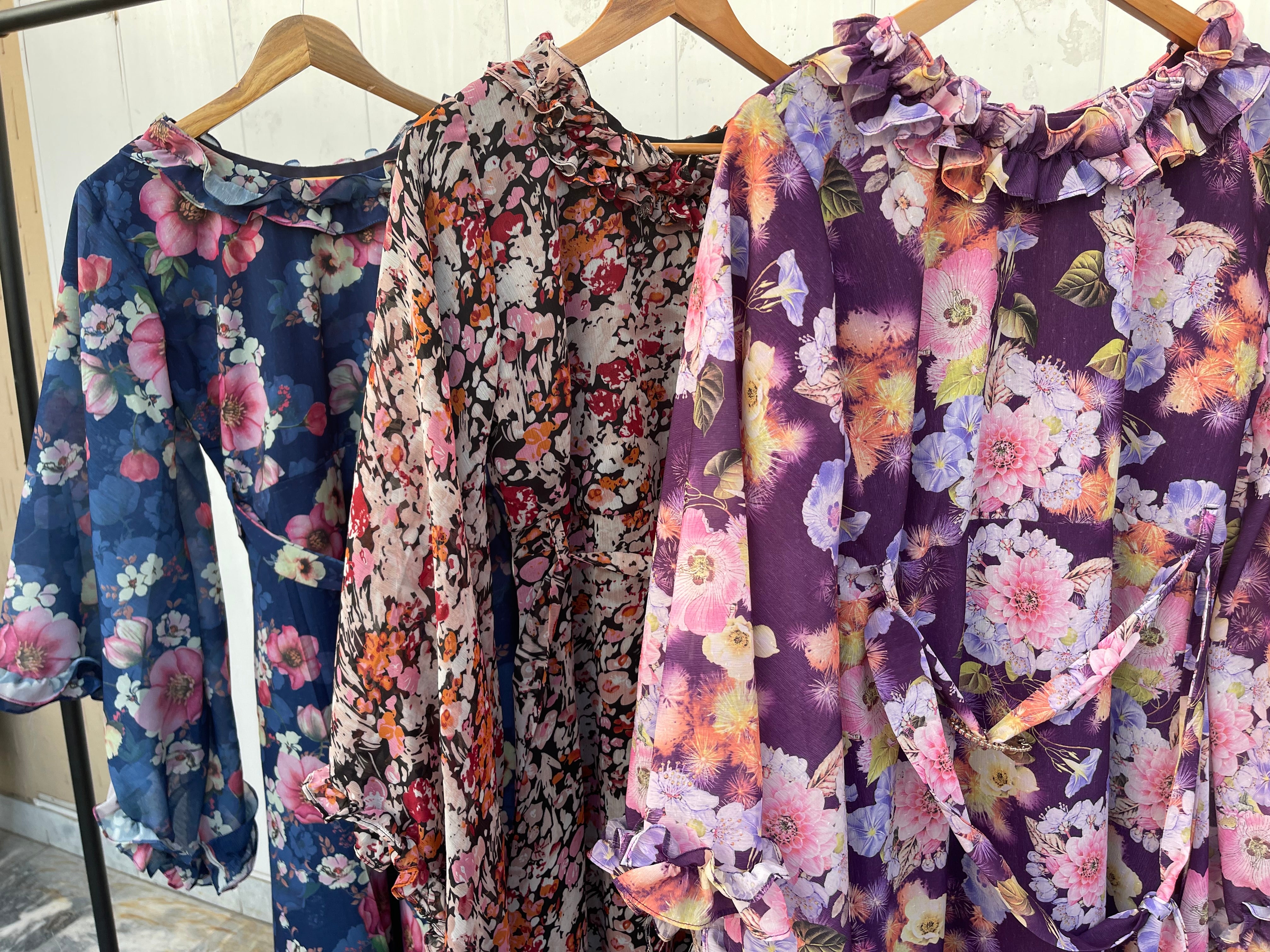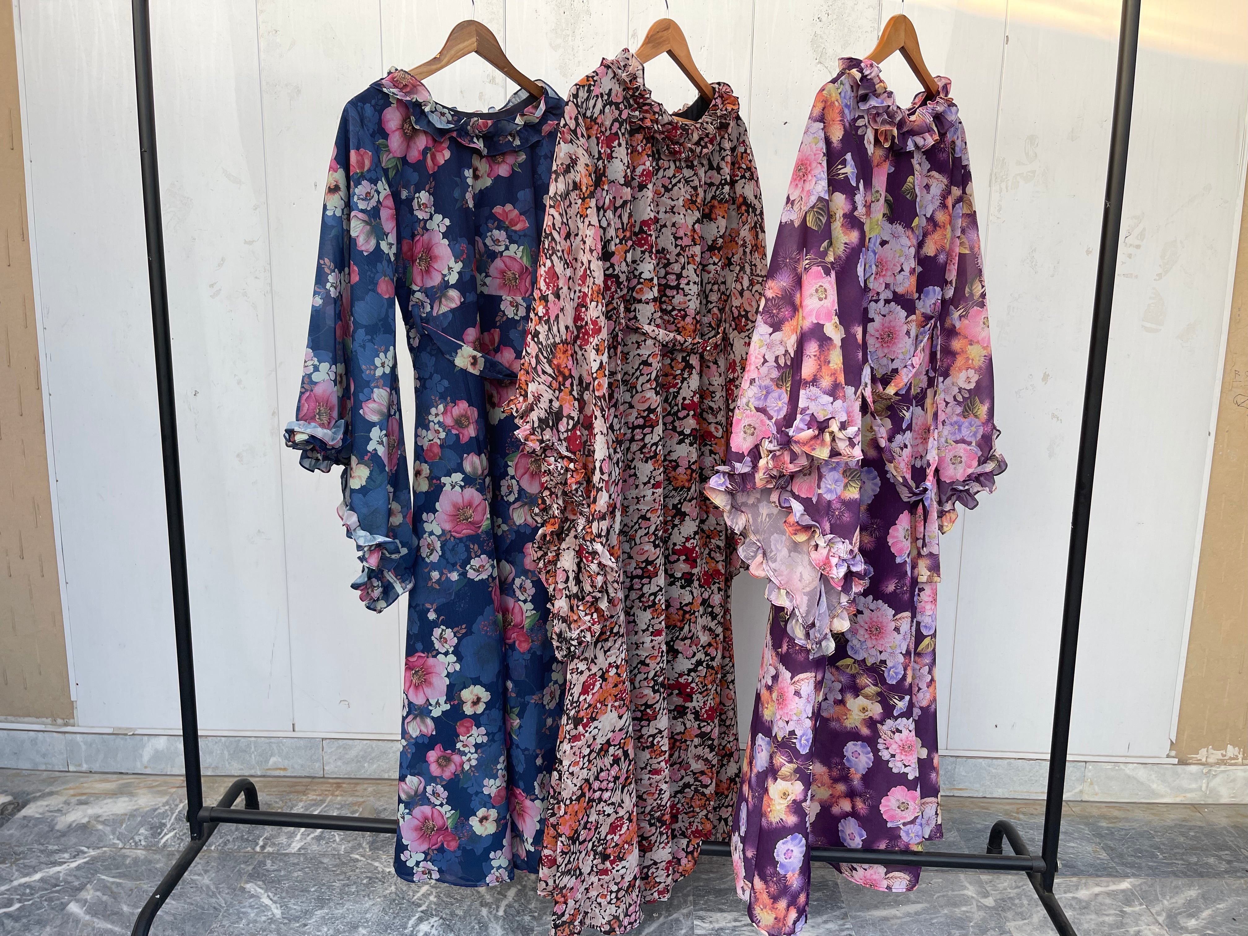 Classy chiffon maxi with unique print design, perfect for any stylish occasion. Comfortable inner lawn lining attached for added convenience and elegance.