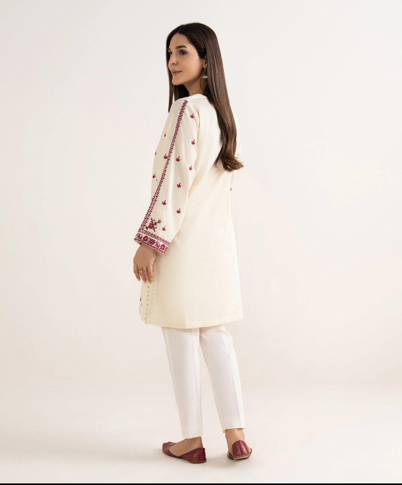 The RAYNA COORD SET features artistic two-tone thread embroidery on the sleeves and shirt, adding a touch of style to this otherwise casual and versatile outfit. The plain straight pant completes the look, making it perfect for daily wear. Elevate your wardrobe with this stylish and comfortable ensemble.