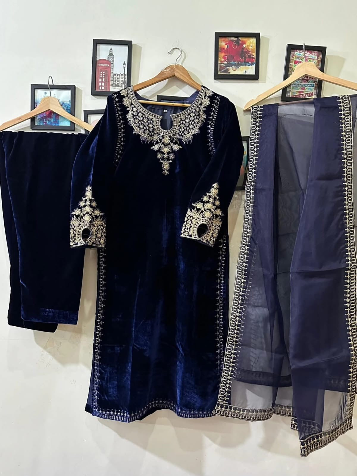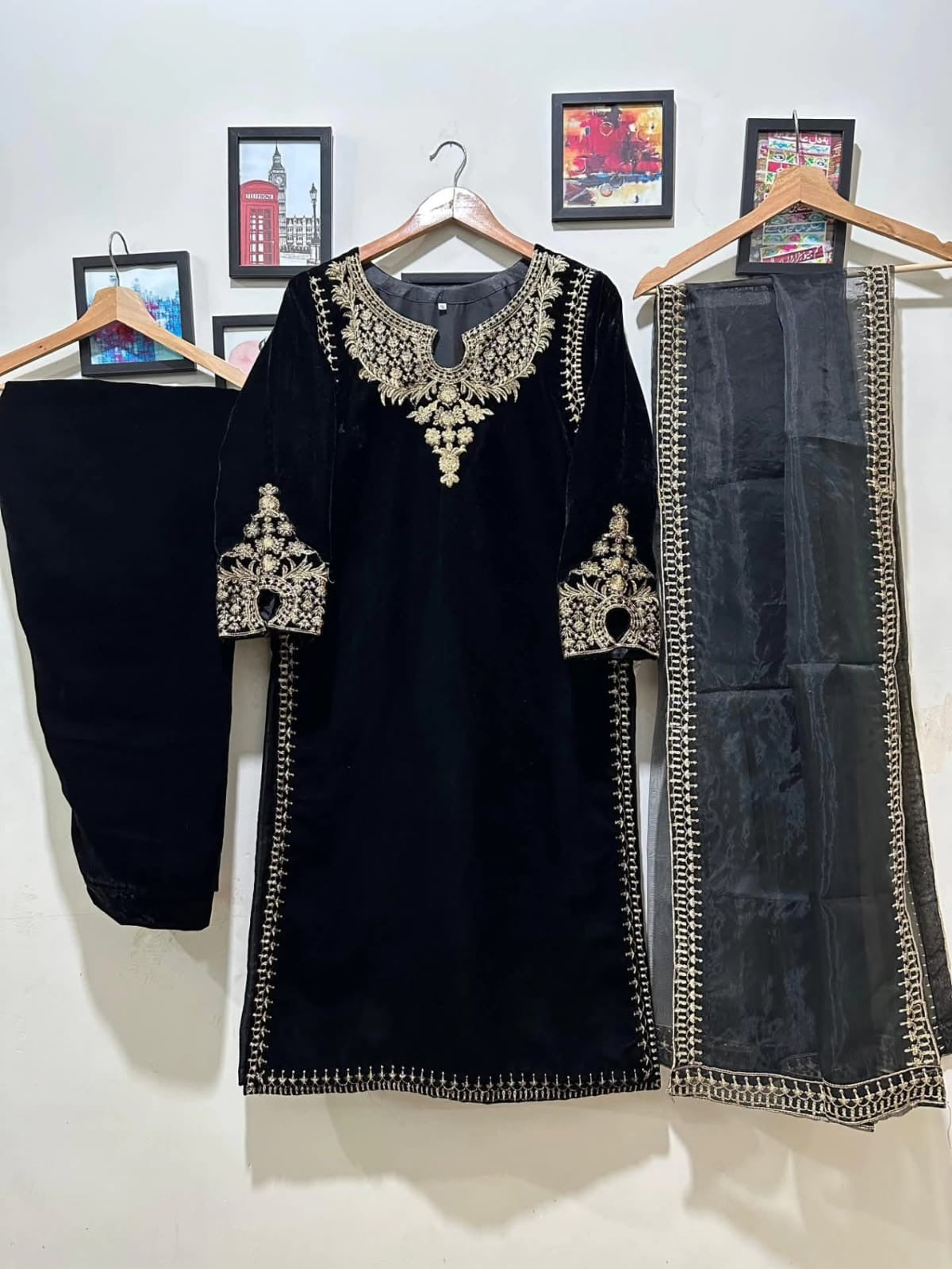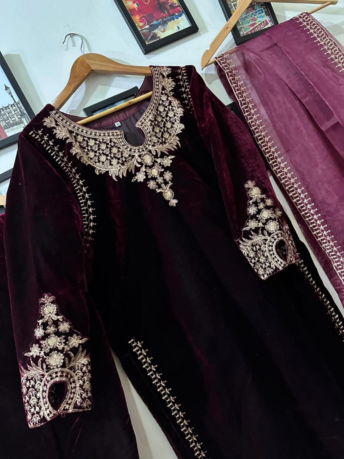 Experience luxury with our 9000 gram fine quality micro velvet embroidered dress. Made from the finest materials, this organza and velvet dress is perfect for any occasion. Elevate your style and stand out with this elegant and timeless piece.